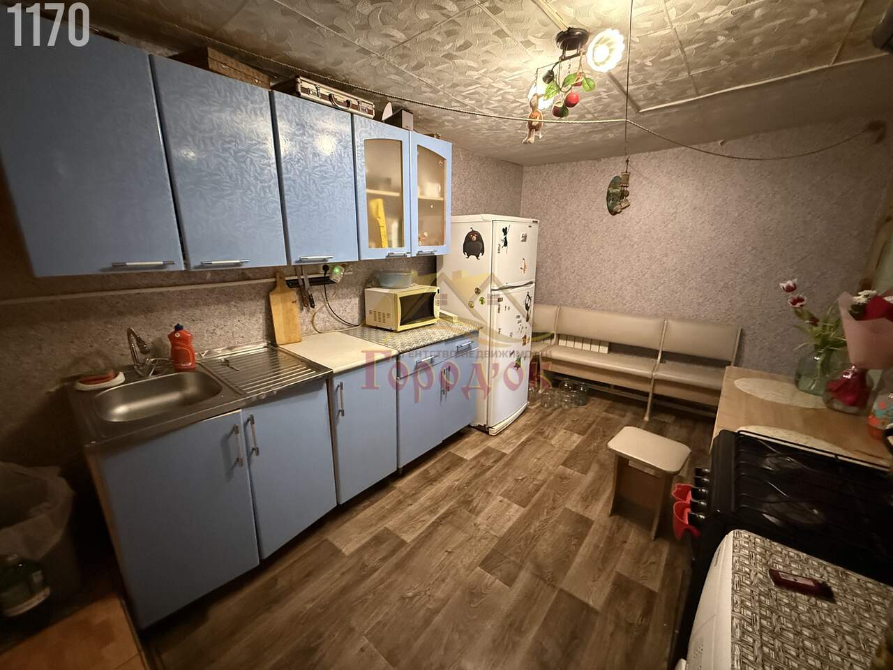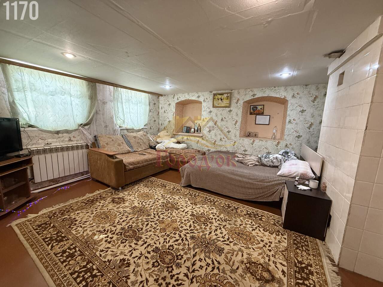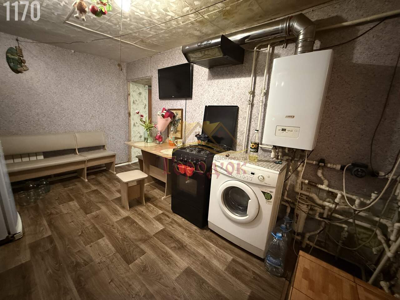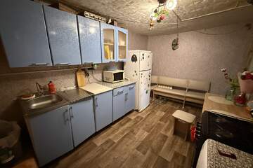 В доме две жилых комнаты ,кухня и санузел совмещенный(выложена плитка )