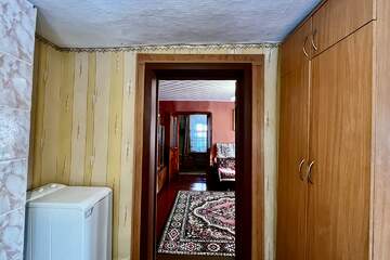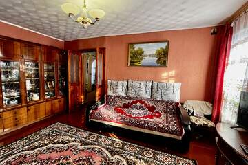 Во второй половине 3 комнаты,раздельный сан узел,центральное водоснабжение и газовый котел.