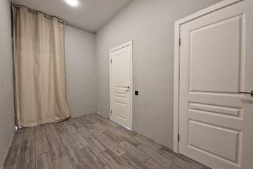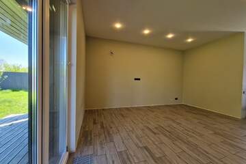 В доме 2 изолированных комнаты, большая гостиная совмещенная с кухонной зоной (32 кв.м), просторный светлый санузел 8 кв.м (душевая кабина, встроенный унитаз, ванна), гардеробная, котельная.В котельной система хранения (стеллажи), люк со встроенной лестницей на чердак и необходимое техническое оборудование. Также в котельной оборудована постирочная зона со стиральной машиной. Из гостиной имеется выход на задний дворик, где можно организовать уютную зону отдыха, скрытую от посторонних глаз.