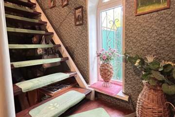 Лестница на второй этаж сделана из качественного дерева.