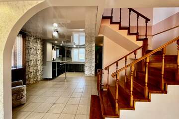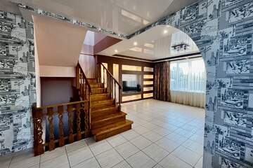 Напольное покрытие на цокольном и втором этажах - линолеум, на первом - плитка, отопление теплый пол, на втором - ламинат.