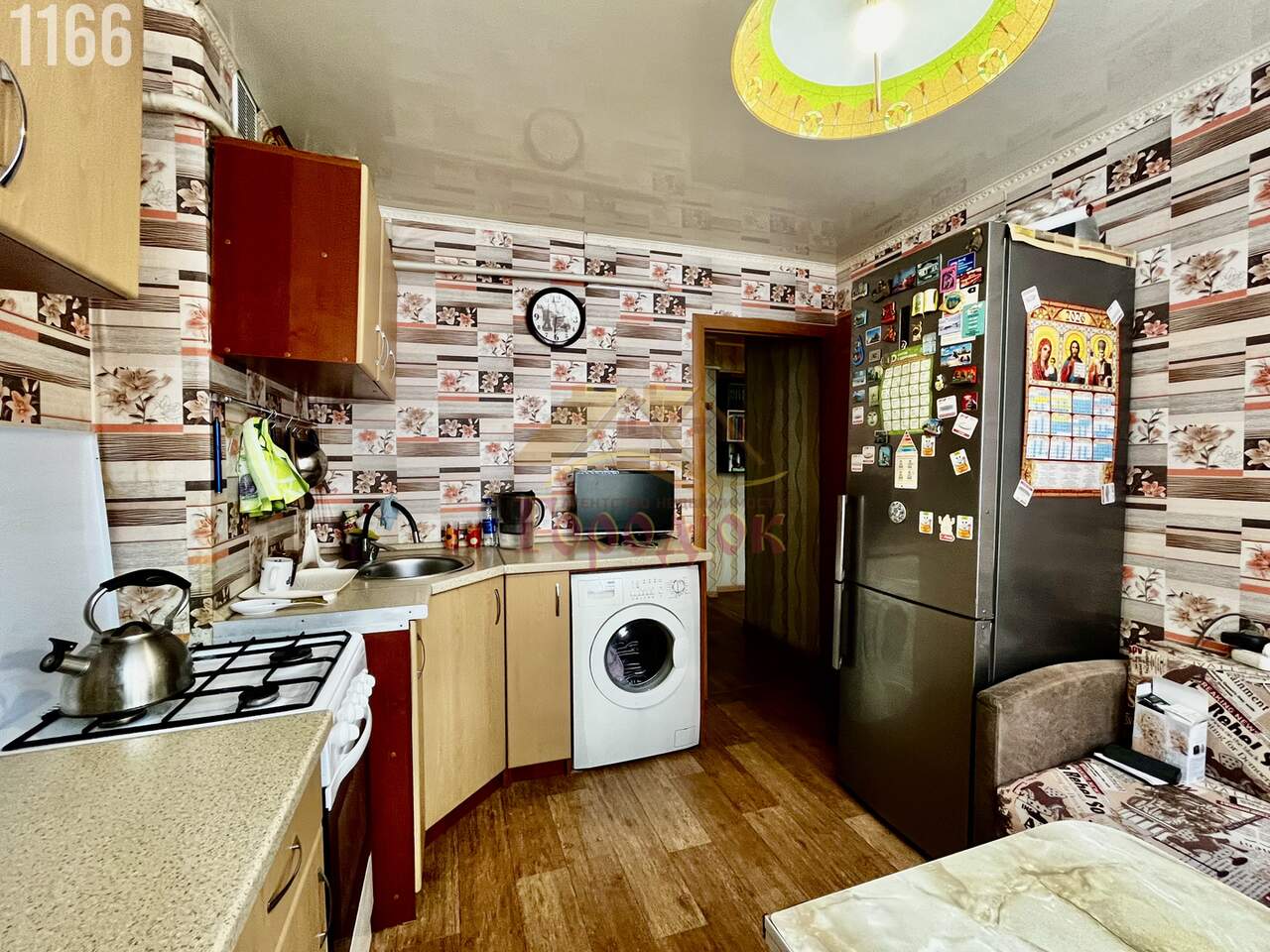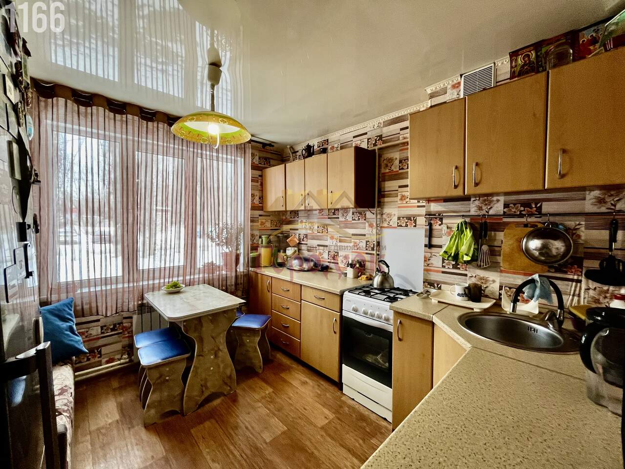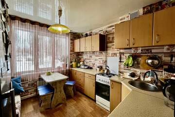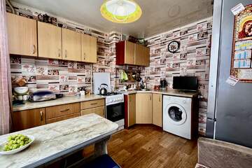 Сан узел раздельный , стены-пластик ,установлен водонагреватель. Большая, просторная кухня.