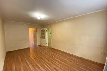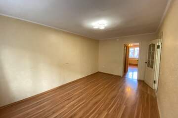 Напольное покрытие в жилых комнатах ламинат, на кухне и в прихожей - линолеум.